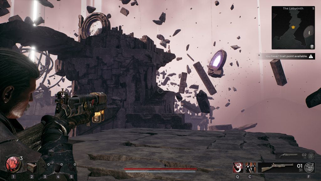 À l’aide d’alliée non-jouable, l’arsenal et l’éventail d’habileté passive continuent leurs expansions lorsqu’on complète des quêtes. Alors que certaines activités optionnelles nous procurent une amélioration permanente, certains boss récompensent le joueur avec une ressource unique lui permettant de fabriquer une arme thématique. Que ce soit une mitraillette à os durcis ou un pistolet projetant des cubes interdimensionnels, les développeurs n’ont pas manqué d’inspiration!