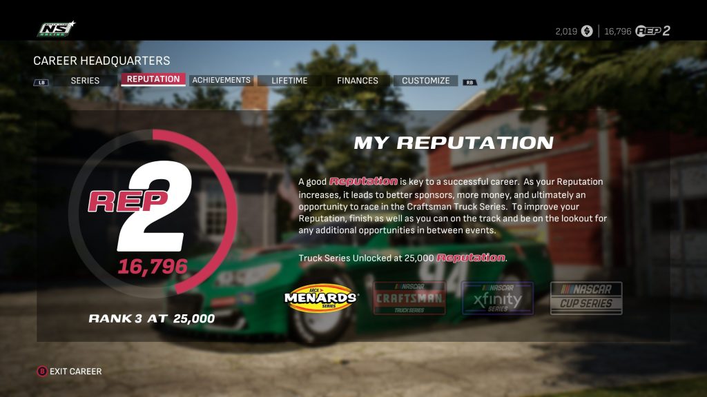 En plus de devoir créer sa réputation au fur et à mesure, NASCAR 25 vous oblige à gérer votre équipe. Vous allez devoir gérer vos commanditaires, vos mécaniciens et vos performances sur la piste. Le jeu tente d’offrir une dimension humaine, un aspect coulisse de la compétition qui manquait souvent aux anciens volets. On négocie des contrats, on choisit des partenaires, on tente de rester performant malgré un budget limité. Des aspects inspirés directement de la réalité difficile d’un jeune pilote professionnel.