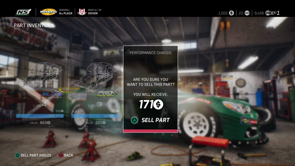Il n’y pas que les commanditaires et son équipe qu’il faut gérer dans NASCAR 25. Vos pièces ont aussi une durée de vie qui influence directement vos performances en course. Investir dans un nouveau moteur permet de grappiller quelques dixièmes de seconde, mais au détriment du budget destiné à la recherche ou à la réparation. Ce choix permanent, entre risque et stabilité, donne un bon rythme au mode carrière. En effet, après chaque course, il faut effectuer les réparations nécessaires. Un élément qui faut encore plus gérer si vous prenez la décision de participer à deux championnats simultanément. Sans oublier que le titre intègre les règlements officiels des catégories et que, par exemple, pour la Truck Series vous devez avoir deux voitures. Cet aspect de gestion du budget et des pièces est ce qui permet au titre de se démarquer et d’approfondir le réalisme.