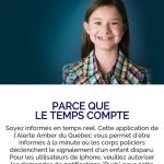 La Sûreté du Québec, en collaboration avec ses partenaires, vient tout juste d’annoncer le lancement d’une application « Alerte AMBER QC » pour iPhone et Android. Elle doit ainsi permettre « d’informer le public encore plus rapidement lors du déclenchement d’une alerte AMBER », et vient compléter les autres canaux de communication déjà présents (page Facebook, compte Twitter, alertes par messagerie texte).