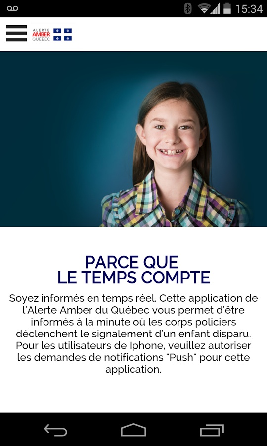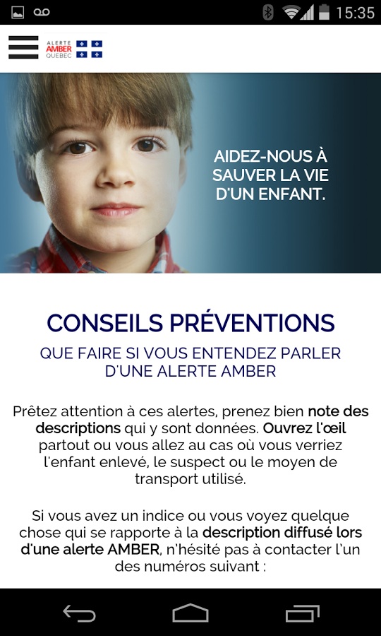 Sur le site Web de l’Alerte Amber, on nous rappelle que les premières heures sont cruciales lors de la disparition d’une personne âgée de moins de 18 ans. Faire connaître l’information rapidement est donc très important. L’application mobile doit donc « permettre de diffuser rapidement à un plus grand nombre de personnes des informations cruciales par géo localisation lorsqu’un enfant est enlevé. »