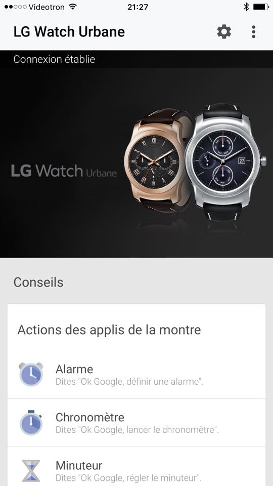 Nous avons décidé d’utiliser la Watch Urbane sur un iPhone 6 Plus, afin de voir si le tout est aussi fonctionnel que sur Android, et quelles sont les principales différences entre les deux OS.