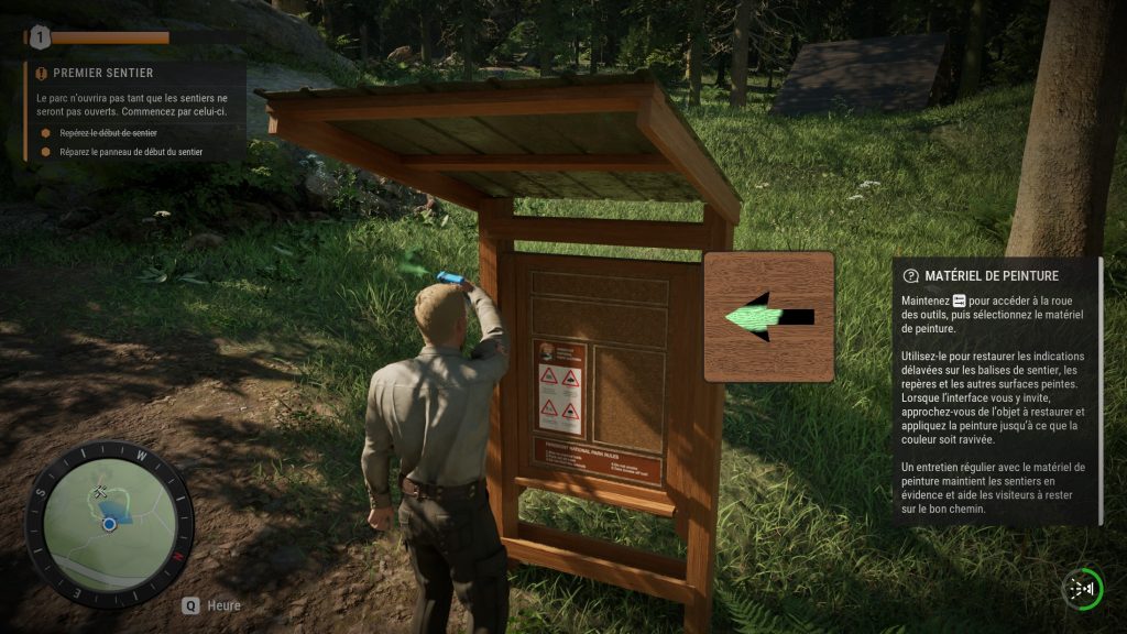 En termes de jouabilité, Ranger’s Path: National Park Simulator s’inscrit dans une formule bien connue des amateurs de simulations. Il faut explorer, accepter des tâches, accomplir des mini-jeux, puis recommencer. La bonne nouvelle, c’est que la diversité est déjà perceptible dans la démo. Durant mon essai, je n’ai pas eu l’impression de répéter mécaniquement la même action en boucle. Le quotidien d’un garde forestier ne se limite pas à admirer la nature. Il faut répondre aux questions des visiteurs, vérifier leurs accès, ramasser les déchets, réparer des installations, intervenir dans certaines situations et maintenir l’ordre général dans la réserve.