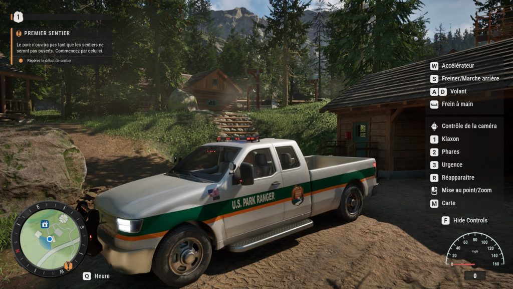 Quant à la carte, elle semble suffisamment vaste pour offrir un sentiment de liberté sans devenir ingérable. Une camionnette est mise à notre disposition pour couvrir de plus longues distances, mais plusieurs interventions dans Ranger’s Path: National Park Simulator nécessitent tout de même de s’aventurer hors des sentiers battus. Il faudra donc accepter de marcher souvent. Heureusement, notre personnage peut courir d’une manière un peu étrange. L’animation manque de naturel et brise légèrement l’immersion, mais cette fonctionnalité devient rapidement essentielle pour éviter que les déplacements ne s’éternisent.