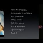 L’iPad Pro sera proposé en version WiFi mais aussi LTE. On retrouvera évidemment le Touch ID, un capteur photo de 8 mégapixels tandis qu’Apple parle d’une autonomie de 10 heures.
