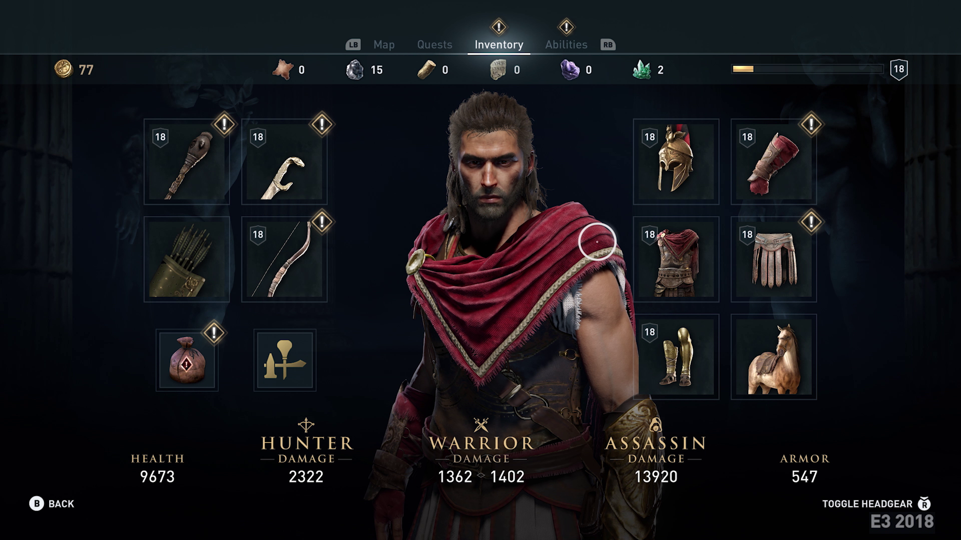 Autre ajout, Alexios et Kassandra seront totalement personnalisables de la tête aux pieds. Il sera possible de choisir les armes et les pièces d’armures couvrant la tête, les bras, le torse, les hanches et les jambes. Ce système est assez près de ce qu’on retrouve dans Destiny, avec un pointage de défense ou de dommage et quelques atouts de base.