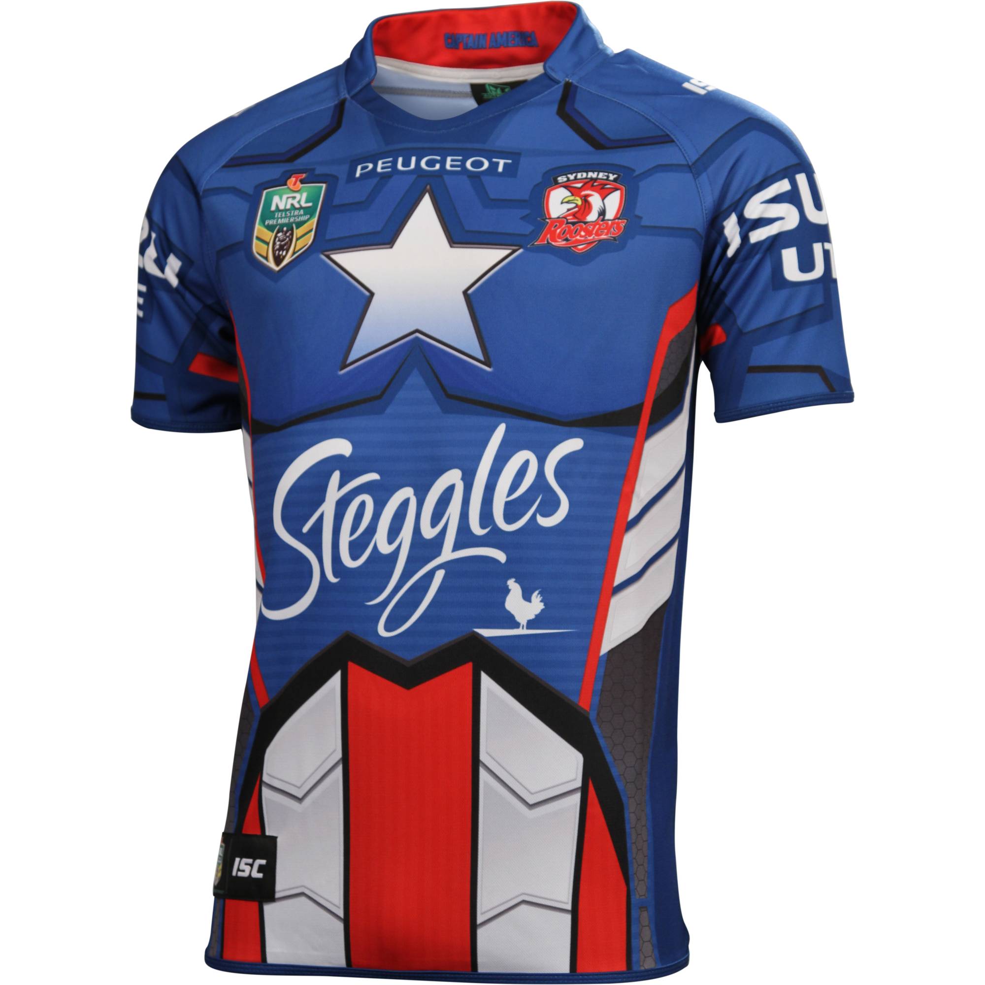 En effet, cinq équipes disposeront de maillots à l’effigie de certains superhéros de la licence Marvel. On retrouvera donc les Sydney Roosters avec Captain America, les Manly Warringah Sea Eagles avec Wolverine, les St. George Illawarra Dragons avec Ironman, les North Queensland Cowboys avec Thor et les Canberra Raiders avec Hulk.