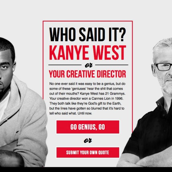 Le site kanyevscreative.com propose de trouver qui a dit certaines phrases : Kanye West ou votre Directeur de Création ?...
