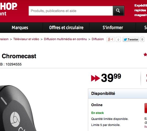 Depuis le 18 mars dernier, Google propose son Chromecast au Canada, en France et dans 9 autres pays en Europe (Danemark,...