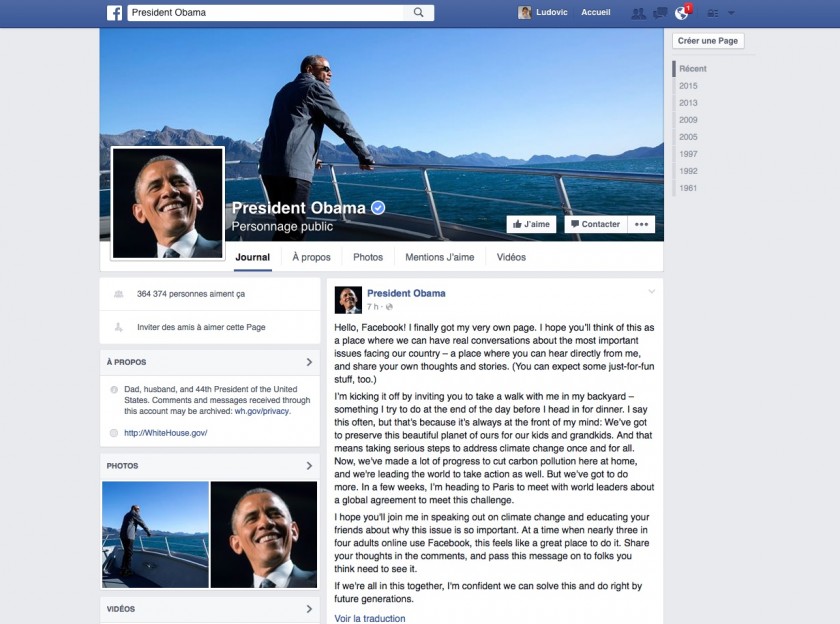 Après seulement sept heures. au moment de l’écriture de cet article, la page est déjà aimée plus de 365 000 fois, tandis que la vidéo a été partagée près de 75 000 fois. On est loin du record établi par le compte Twitter de Barack Obama ouvert en mai et qui avait atteint le million d’abonnés en moins de 5 heures, mais cela devrait accorder une audience intéressante au Président.