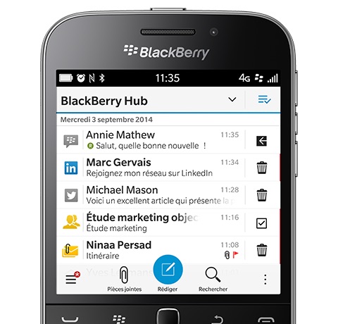 Le BlackBerry Classic intègre le système d’exploitation BlackBerry 10.3.1, une mise à jour qui sera d’ailleurs disponible prochainement sur les autres BlackBerry. Concrètement, on retrouvera le nouveau design du système d’exploitation avec un passage au flat design et de nouvelles fonctionnalités dans le hub notamment, mais également trois nouveautés majeures introduites avec la 10.3 dont le Passeport avait l’exclusivité jusque là :