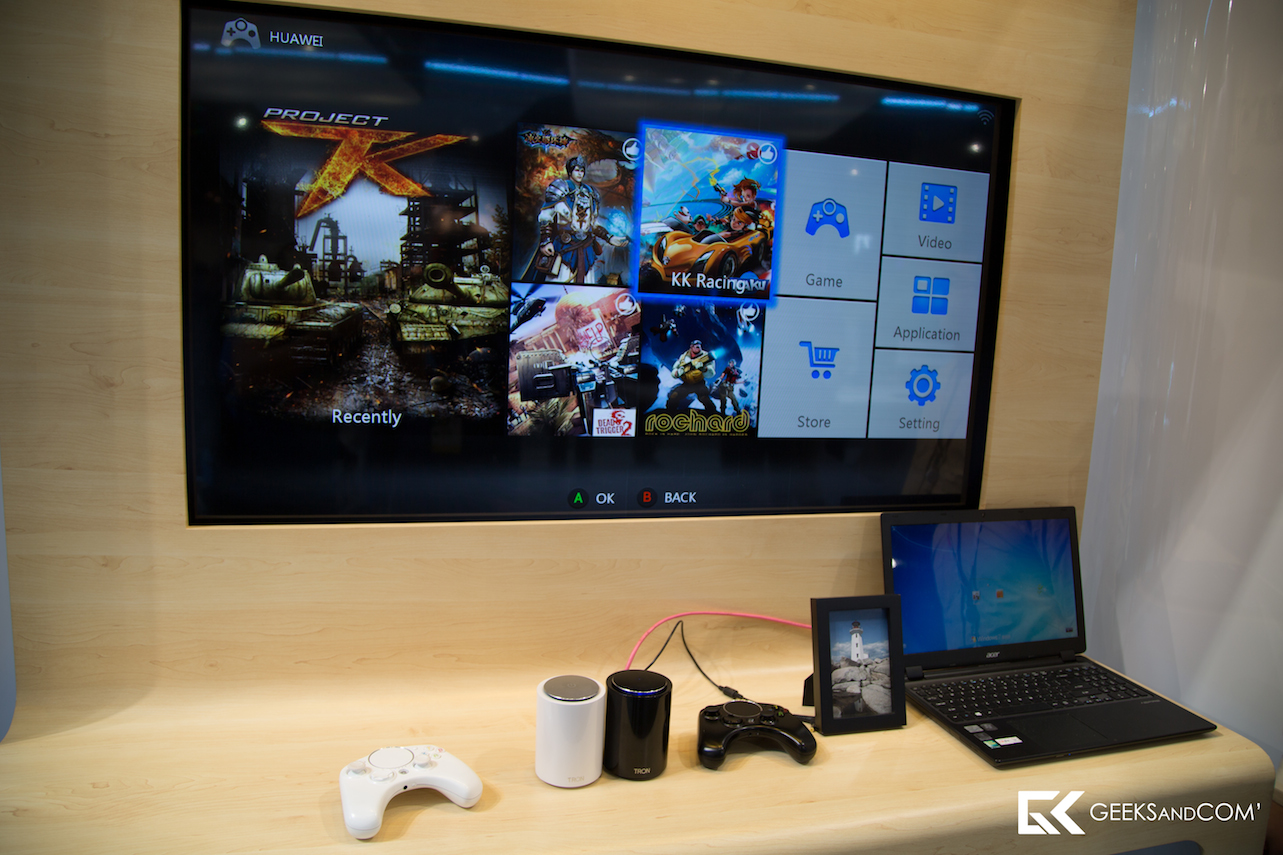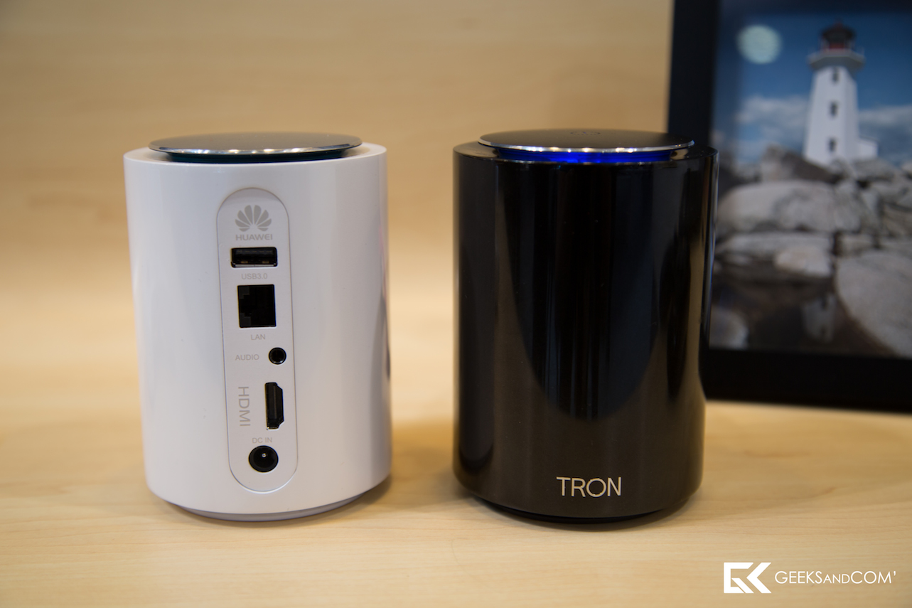 Si ni le nom de la Huawei Tron ni son design cylindrique n’inspirent confiance il faut l’avouer, ce sont plutôt ses pièces qui dicteront son avenir. Outre le processeur graphique décrit plus haut, la console proposera un espace disque de 32 gigaoctets et d’un emplacement micro-SD pour étendre l’espace. La console a également un port éthernet, le Bluetooth, le WiFi à la dernière norme 802.11ac ainsi qu’un port USB 3.0.