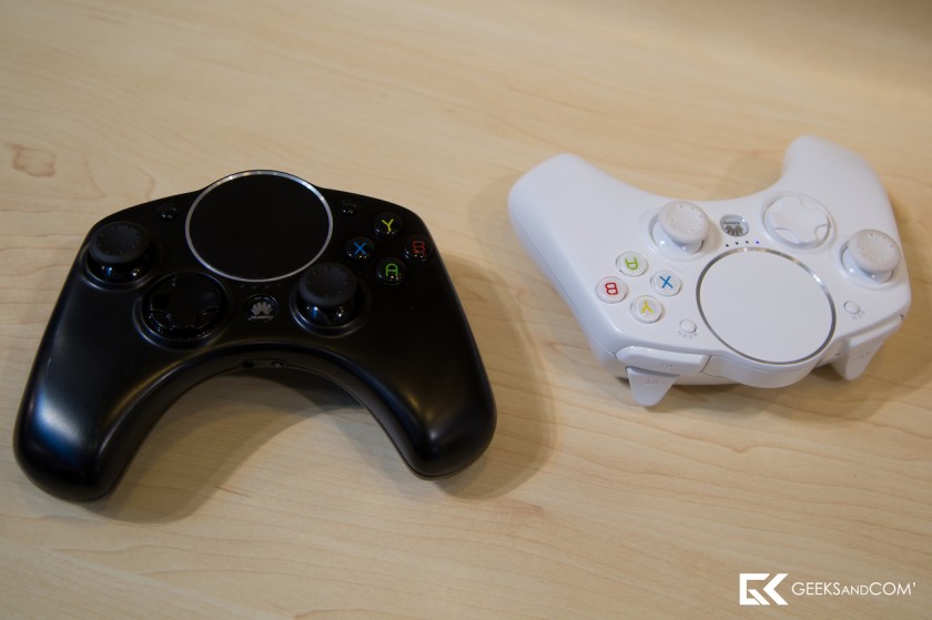 La manette de jeu, quant à elle, ressemble drôlement à celle de la Xbox 360 qui aurait eu un enfant avec celle de Steam Machines; une croix multidirectionnelle, deux sticks analogiques, des boutons à droite, des gâchettes et un pavé tactile circulaire qui prend beaucoup d’espace.
