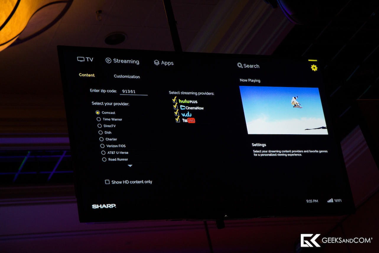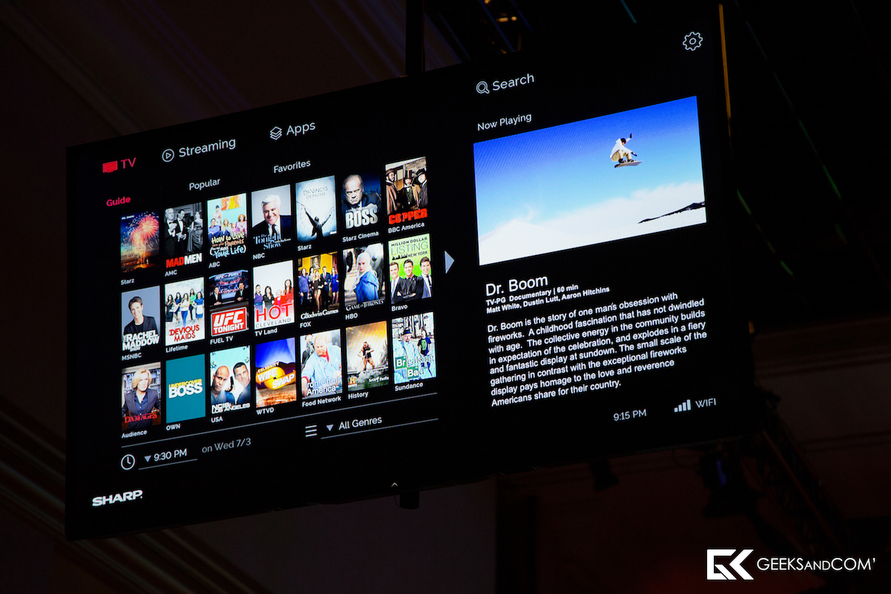L’interface proposée par Sharp permet de définir les centres d’intérêts des utilisateurs afin de compiler les différentes sources de contenus vidéos au sein d’une même interface, qu’il s’agisse du câble, du satellite ou même des contenus en streaming.