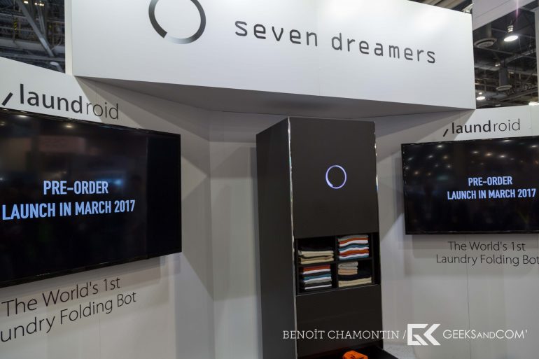 Le Laundroid devrait être disponible en précommande dès le début de l’année, pour un lancement en 2017. Aucun prix n’a pour le moment été annoncé, mais lorsque nous avons posé la question, le représentant de la Sevan Dreamers nous a répondu avec un grand sourire qu’il s’agissait d’un produit de luxe, et qu’il n’était donc pas prévu qu’il soit abordable, même si par la suite évidemment la technologie aidera à en faire baisser les prix.