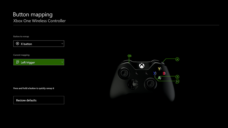 Comme l’explique Major Nelson, vous pourrez intervertir deux boutons, par exemple votre bouton Y pourra effectuer la tâche qu’effectuait votre bouton X et vice-versa. Vous pouvez faire ça avec l’ensemble des boutons. En revanche, vous ne pouvez pas retirer une commande de la manette ni programmer plusieurs boutons pour faire la même chose (options disponibles pour la manette Elite).