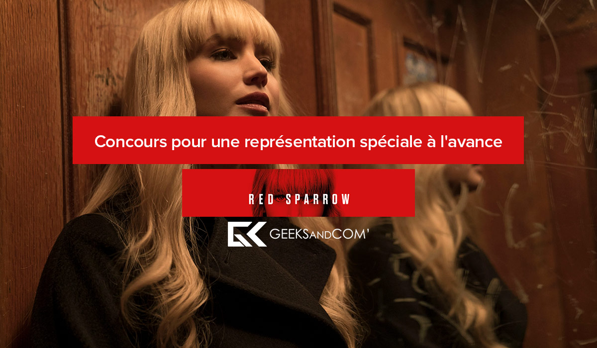 Geeks and Com’ en partenariat avec les studios 20th Century Fox vous offre la chance de remporter l’un des laissez-passer doubles pour une représentation spéciale à l’avance du film RED SPARROW.
