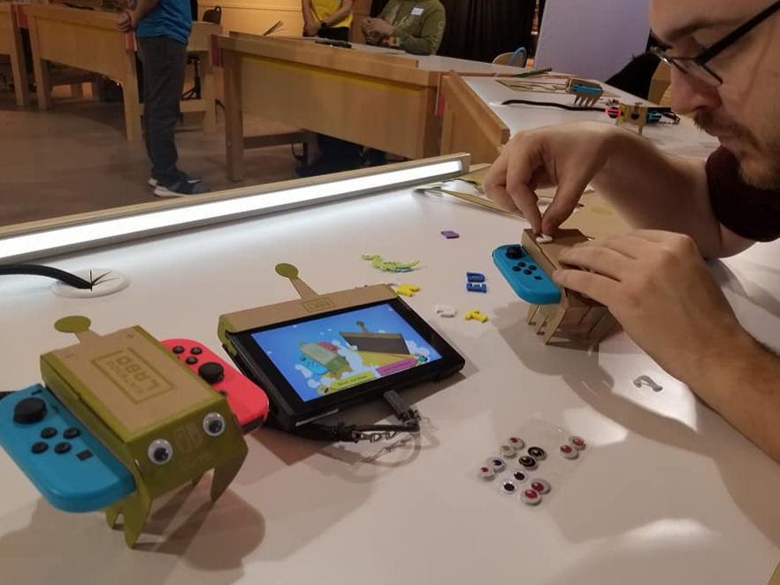 Bref, la partie « construire » s’est avérée réellement amusante même pour les plus vieux comme moi. En plus, il y a différents niveaux de complexité, ce qui devrait permettre d’attirer des jeunes de tout âge. L’étape de la construction sera assurément une activité parent-enfant très amusante. Une fois construit, un autre attrait majeur est de s’amuser à décorer notre création. Lors de la démonstration, j’ai été bien impressionné par les exemples que Nintendo avait préparés. La personnalisation sera vraisemblablement au centre de Nintendo Labo. Il suffira de laisser aller son imagination.