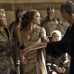 Margery Tyrell était parti de Port-Réal pour demander de l’aide à sa grand mère suite à l’arrestation de son frère. La mère du roi voyait son pouvoir diminuer au profit de sa belle fille, elle décida alors de monter sa propre armée en prêtant main forte au Haut Moineau. Ce dernier se faisait passer pour une personne pieuse mais il était tout le contraire. Le frère aux arrêts, la grand mère Tyrell se rend auprès de Cersei pour tenter de négocier avec elle. Toutes deux discutent alors des pratiques du Petit fils Tyrell. Cersei exprime clairement qu’elle se moque de ses penchants sexuels, elle ne fait cela que pour gagner du pouvoir sur le roi et la reine. Les deux grandes figures féminines des familles Lannister et Tyrell s’entendent alors sur un accord pour que le procès de Loras n’entache pas la famille Tyrell.