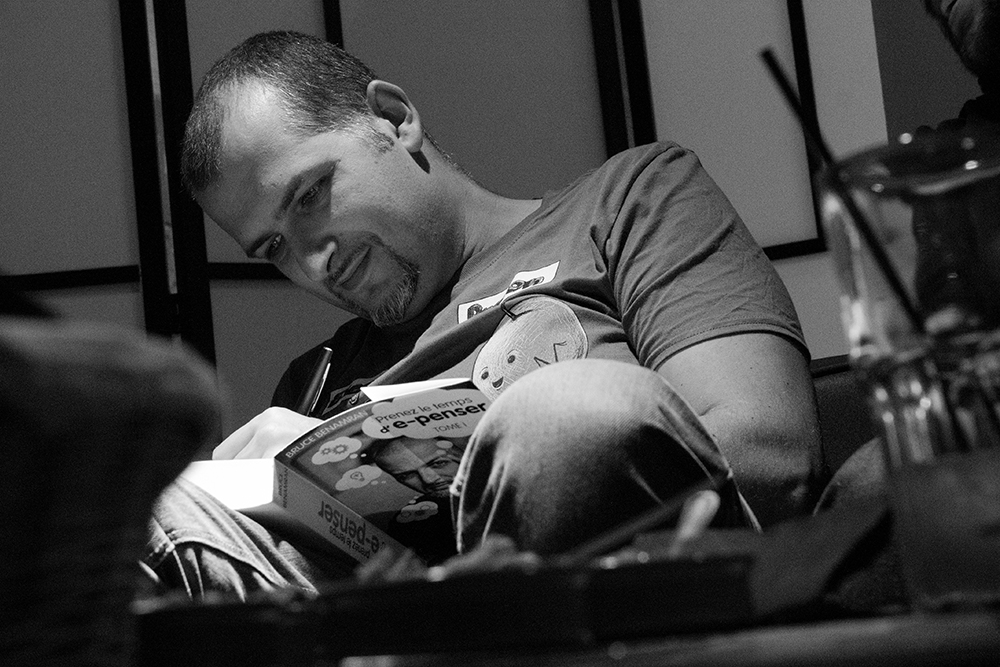 En bref, Prenez le temps d’e-penser est bon livre de vulgarisation, à l’image de son auteur talentueux, qui aborde de nombreux sujets en ne parlant pas que des phénomènes en eux-mêmes mais aussi de l’histoire de leur découverte. Mais il reste difficile d’accès tel quel pour des personnes n’ayant pas approchées les sciences depuis longtemps. Pour ceux qui s’y connaissent en culture du web, quelques « Easter Eggs » sont cachés dans le texte, l’occasion de lire encore plus attentivement chaque page et, pourquoi pas, lors d’une rencontre avec Bruce, de lui en sortir la liste !