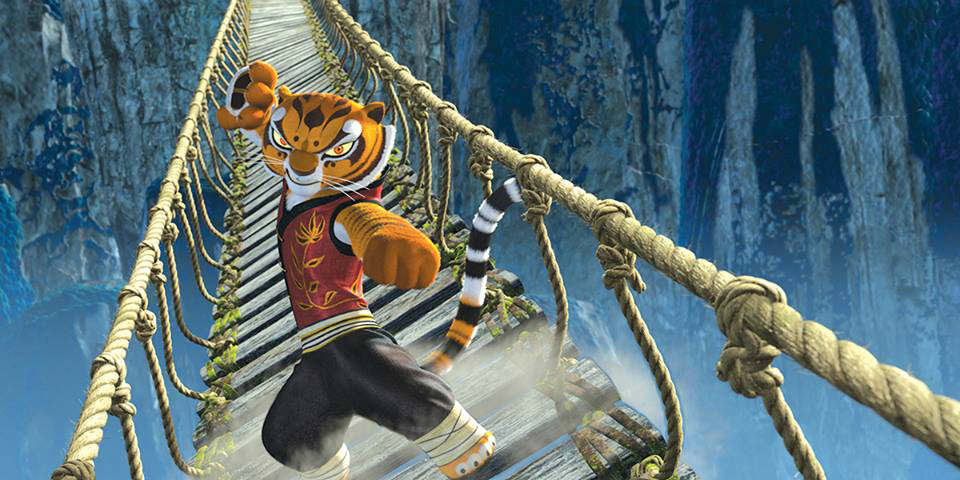 Dès les premières minutes du film, le graphisme se démarque des autres films d’animation. En effet, Kung Fu Panda 3 ainsi que les deux précédents opus utilisent les dessins 2D pour illustrer certaines scènes de Kung Fu. Par exemple, lors de la première scène du film, on aperçoit les silhouettes des personnages de Tigresse, Vipère, Singe, Grue, Mantes et Po en pleine action, sautant de toit en toit, en faisant du Kung Fu, pour arriver à une place très spéciale, le restaurant de nouille au père à Po. Ce petit détail fait toute la différence parce qu’il rappelle la culture chinoise avec l’utilisation des ombres chinoises.