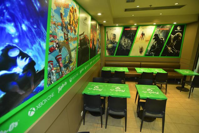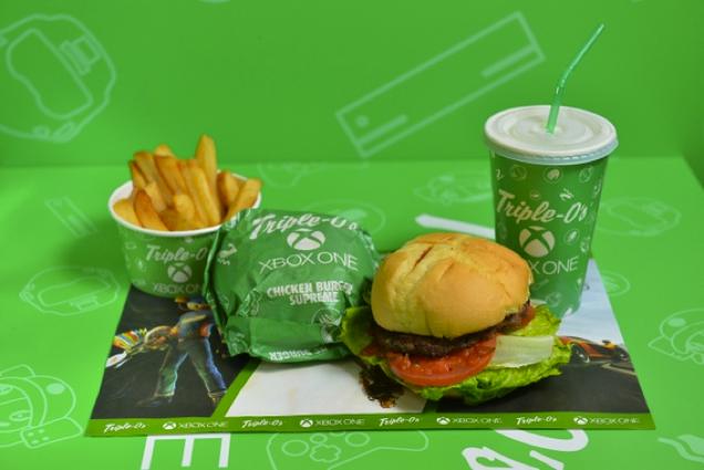 Pour amplifier cette campagne de communication, Xbox a recouvert les murs de ces restaurants Triple-O avec des affiches des gros titres de la Xbox One comme Evolve, Sunset Overdrive ou Forza Horizon 2. On retrouvera également la couleur verte propre à Xbox sur les gobelets de soda, le papier emballant les burgers, mais aussi le mobilier et le comptoir. De plus, de nombreux lots seront à gagner lors de la commercialisation de ces burgers.
