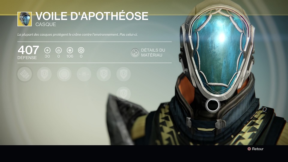 Cette semaine, Xûr propose quand-même une très belle nouveauté d’articles en promotion. Si l’une des armures vous est toujours manquante dans votre inventaire, allez-y pour la collection, car les améliorations ne sont pas des plus utiles en situation de combat. Pour avoir essayé l’esquive du Titan en l’air, je vous recommande de la pratiquer plusieurs fois si vous optez pour cette solution avant d’aller au combat. Finalement, le Monte-Carlo est un bon outil PVP à avoir, mais pas le meilleur. Allez, bonne chasse gardiens !