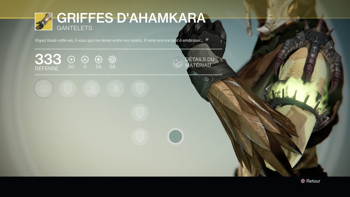 • Les griffes d’Ahamkara (Défense : 280) – Gantelets Arcaniste – 13 pièces étranges