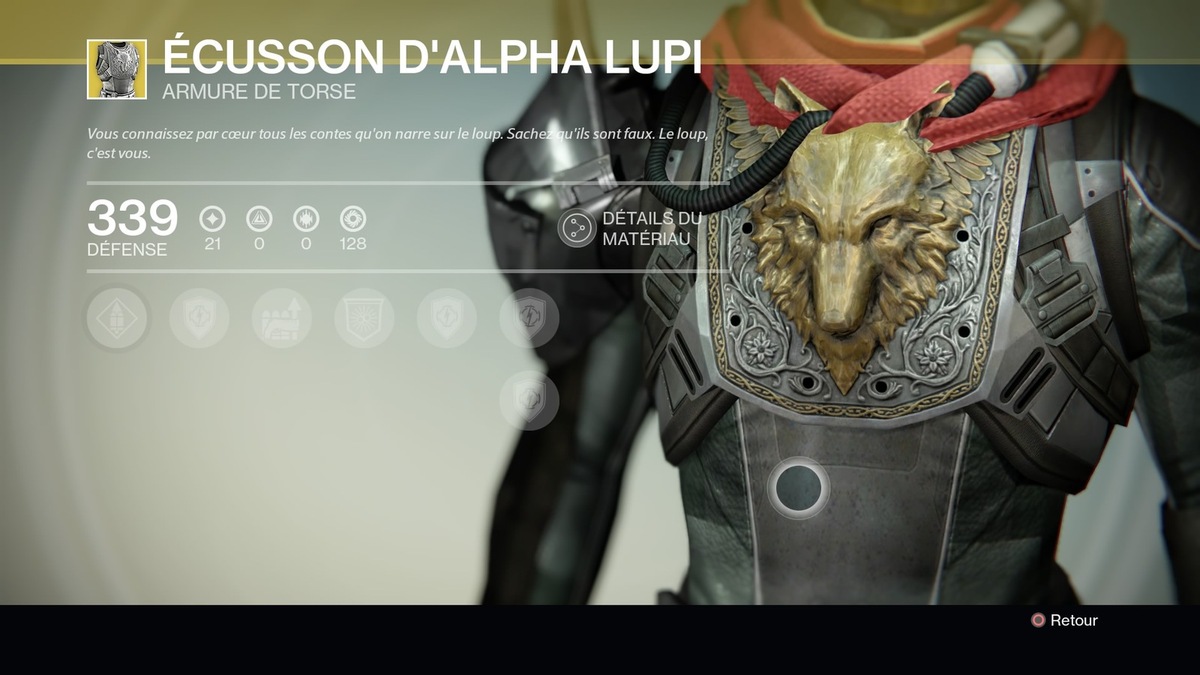 • Ecusson d’Alpha Lupi (Défense : 280) – Torse Chasseur – 13 pièces étranges