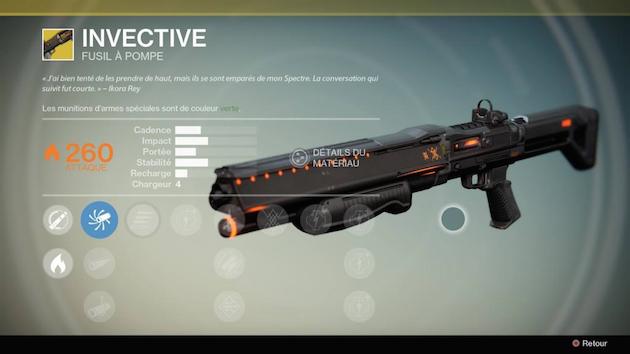 • Invective (Attaque : 280) – Fusil à pompe – 17 pièces étranges