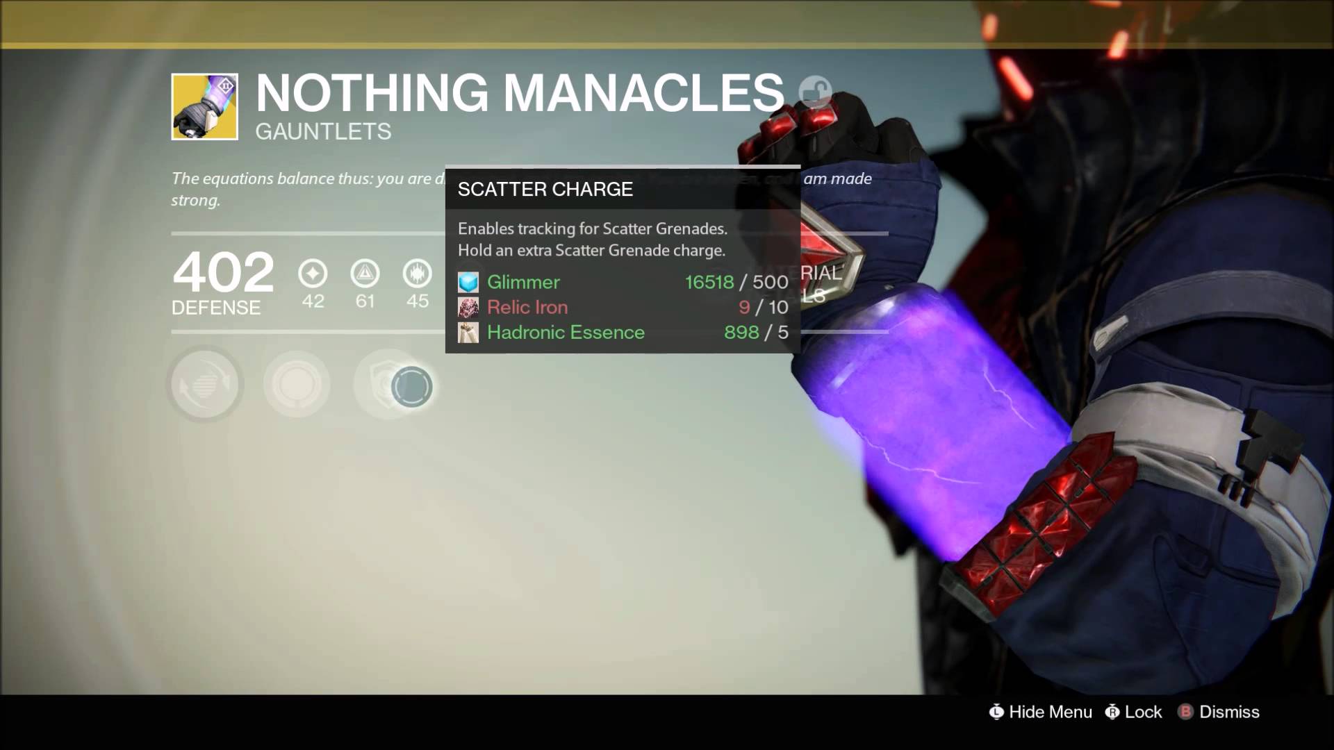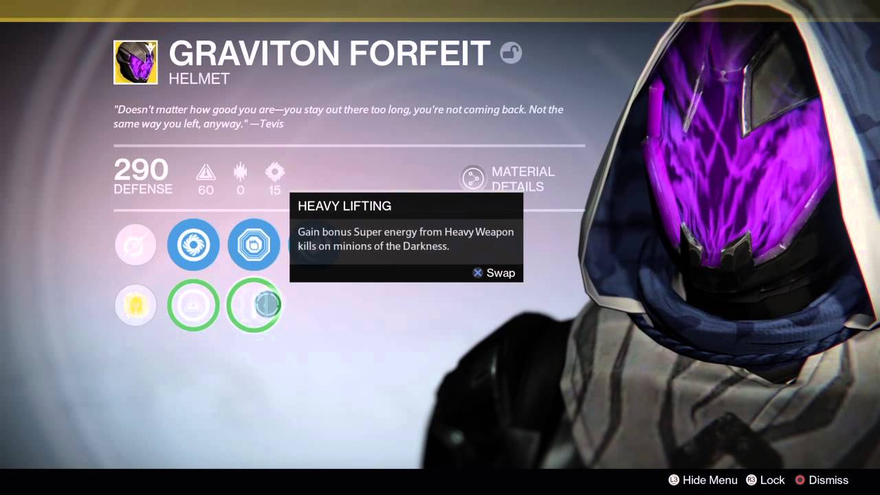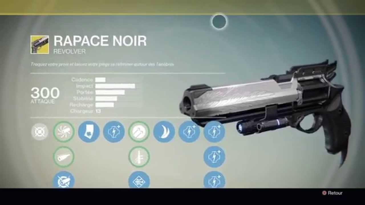 Nous vous conseillons d’acheter le rapace noir si jamais vous n’avez pas encore acquis cet excellent revolver. Il n’est pas de niveau 290 mais vous pouvez infuser d’autres armes pour monter son niveau. En ce qui concerne les pièces d’armure, nous vous déconseillons les bottes Titan mais en revanche, les deux autres pièces sont très rarement vendues par Xur mais seul le casque de chasseur mérite réellement le détour.
