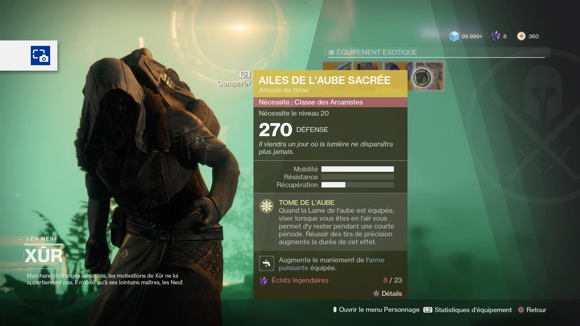 Ailes de l’Aube Sacrée – Torse arcaniste (13 éclats légendaires) :
