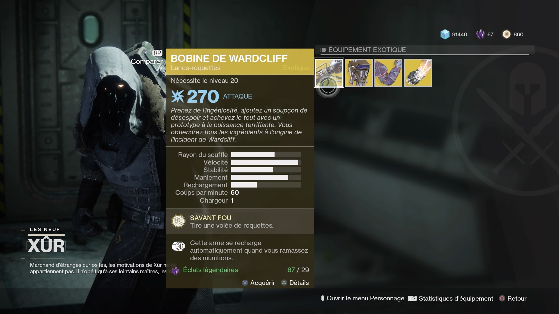 Bobine de Wardcliff – Lance-roquette (29 éclats légendaires) :