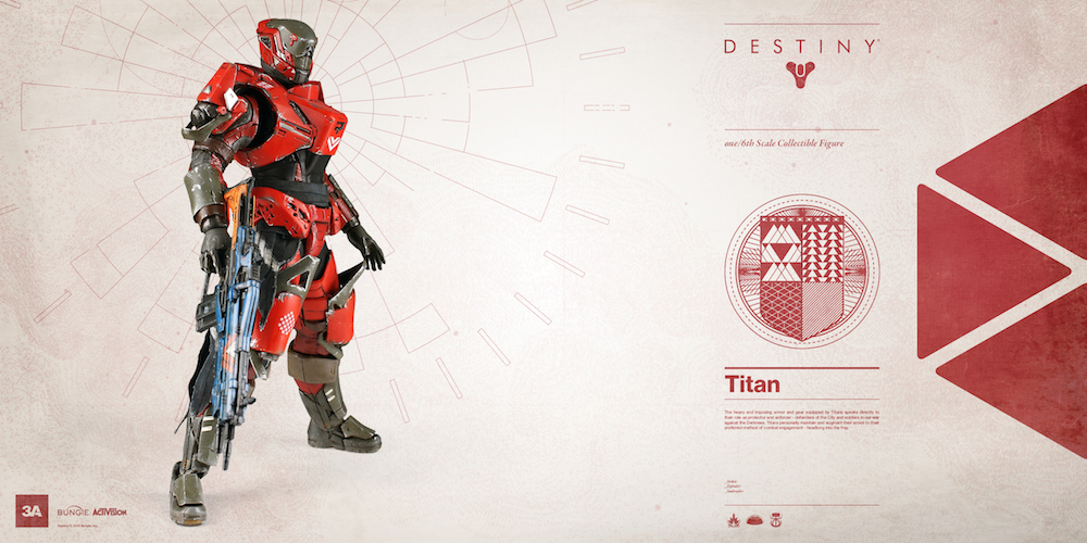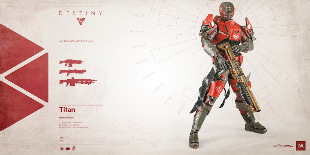 Il s’agit d’une réplique à l’échelle 1/6 d’un Titan avec une armure rouge, vendue avec 4 armes (Hawkmoon, Shadow Price, Felwinter’s Lie, Zombie Apocalypse), une paire de mains supplémentaires et un réel fanion en tissu. Et autant vous dire, elle a l’air super cool. Je pense qu’elle sera prochainement accompagnée de statues Arcaniste et Chasseur pour ne rendre personne jaloux.