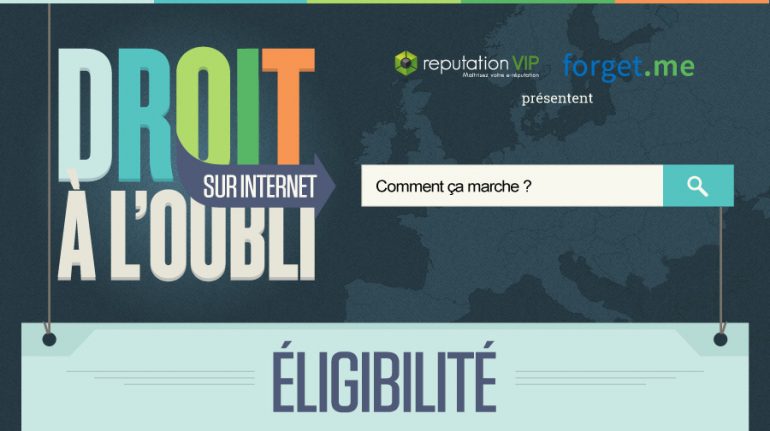 Si vous souhaitez mieux comprendre la démarche de droit à l’oubli numérique en Europe, réputation VIP et forget.me viennent de mettre en ligne une infographie qui vous donnera quelques informations utiles pour faire sa demande.