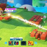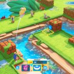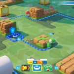 La jouabilité se déroule en deux phases. D’abord, en mode exploration nos héros se promènent dans le monde où ils peuvent interagir avec d’autres personnages et trouver toutes sortes d’objets. Dans la démo que j’ai essayée, les interactions consistaient principalement à observer plusieurs lapins qui ne faisaient pas partie de notre groupe faire un peu n’importe quoi menant à des scènes plutôt rigolotes. En se promenant, on reconnaît très bien l’univers très coloré de Mario et est parsemés de détails tirés de la franchise.