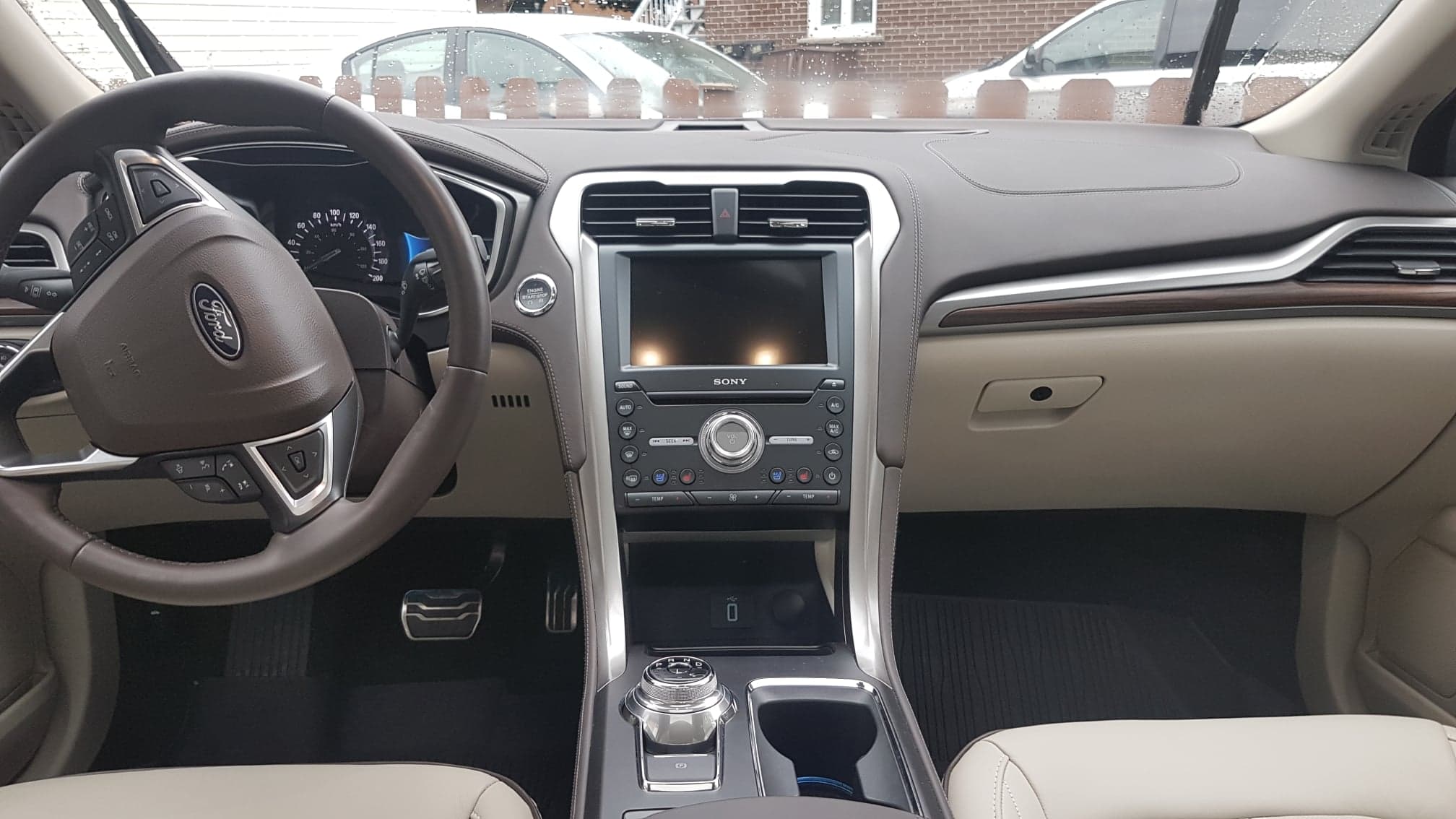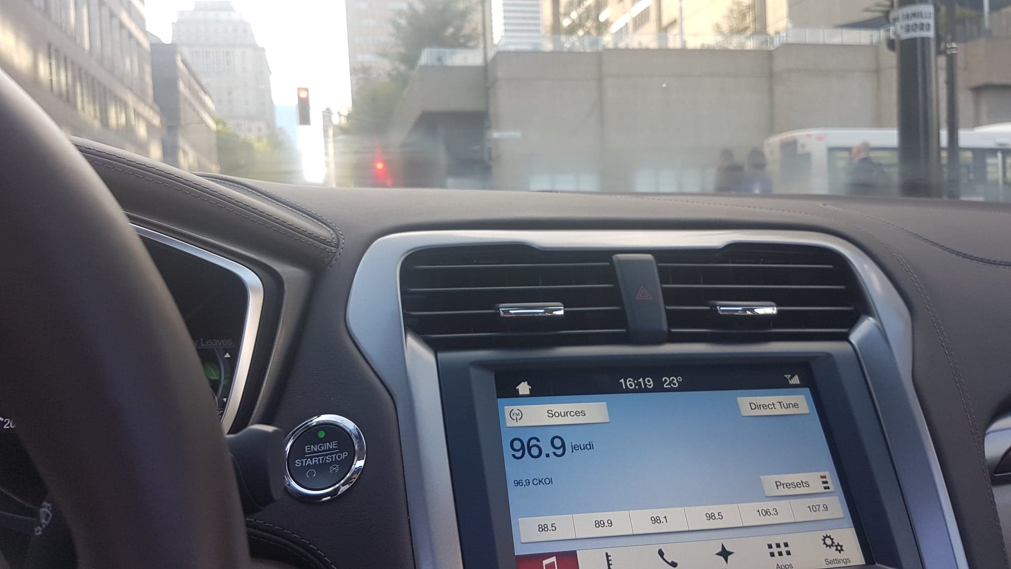 À ma grande surprise, je n’ai jamais mis une goutte d’essence de toute la semaine dans la voiture. La Ford Fusion Energi possède une batterie vous offrant environ 35 km d’autonomie, se rechargeant elle-même dans les embouteillages à l’aide de la récupération d’énergie sur le freinage. Combinez le tout avec la possibilité de charger la voiture au boulot et vous retrouverez un homme heureux de ses dépenses (0 $) d’essence. Le principe de récupération d’énergie fonctionne assez efficacement et un mini jeu sur le tableau de bord principal forcera les amateurs technologiques à faire lever les petites feuilles vertes pour recharger plus rapidement la batterie. Cette dernière fonctionnalité peut sembler farfelue pour certains, je vous confirme qu’elle est drôlement efficace.