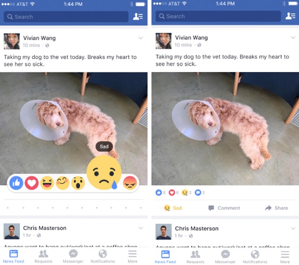 À partir de demain, certains utilisateurs en Irlande et en Espagne vont commencer à voir de nouvelles réactions possibles, des boutons Emoji qui permettent aux utilisateurs d’exprimer leurs émotions sur le statut d’un ami. Concrètement, il suffit de rester appuyé sur le bouton J’aime / Like sous le statut pour avoir les options supplémentaires proposées par Facebook.