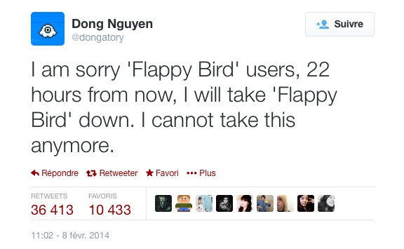 Tweet Don Nguyen - Flappy Bird - Fevrier 2014
