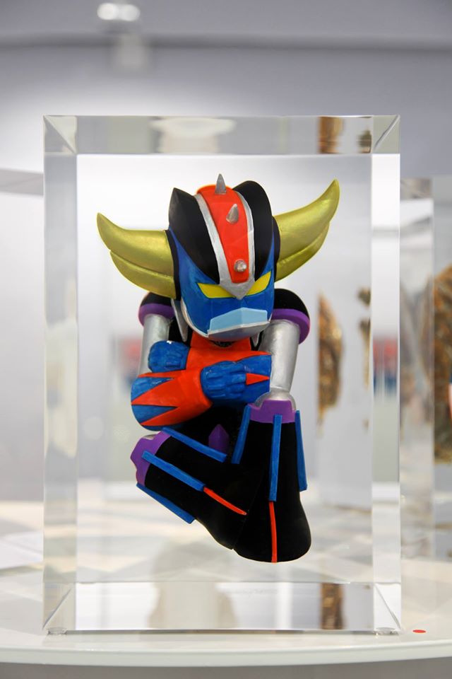 On pourra donc découvrir plusieurs masques ou sculptures notamment et certains montages photo incluant Goldorak dans un milieu urbain ou dans des scènes cultes de l’histoire, de l’art ou de la culture populaire. Voici d’ailleurs quelques photos du travail des différents artistes :