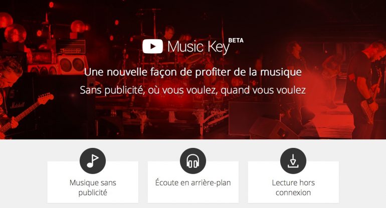 Après les rumeurs puis les premières informations via une entrevue de Susan Wojcicki au New York Times, Google vient d’annoncer officiellement Music Key, un service avec abonnement pour YouTube. Comme son nom l’indique, il s’agit d’une offre centrée sur la musique avec notamment un accès à la bibliothèque complète de Google Play Music (plus de 30 millions de musiques) .