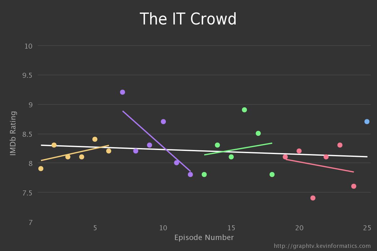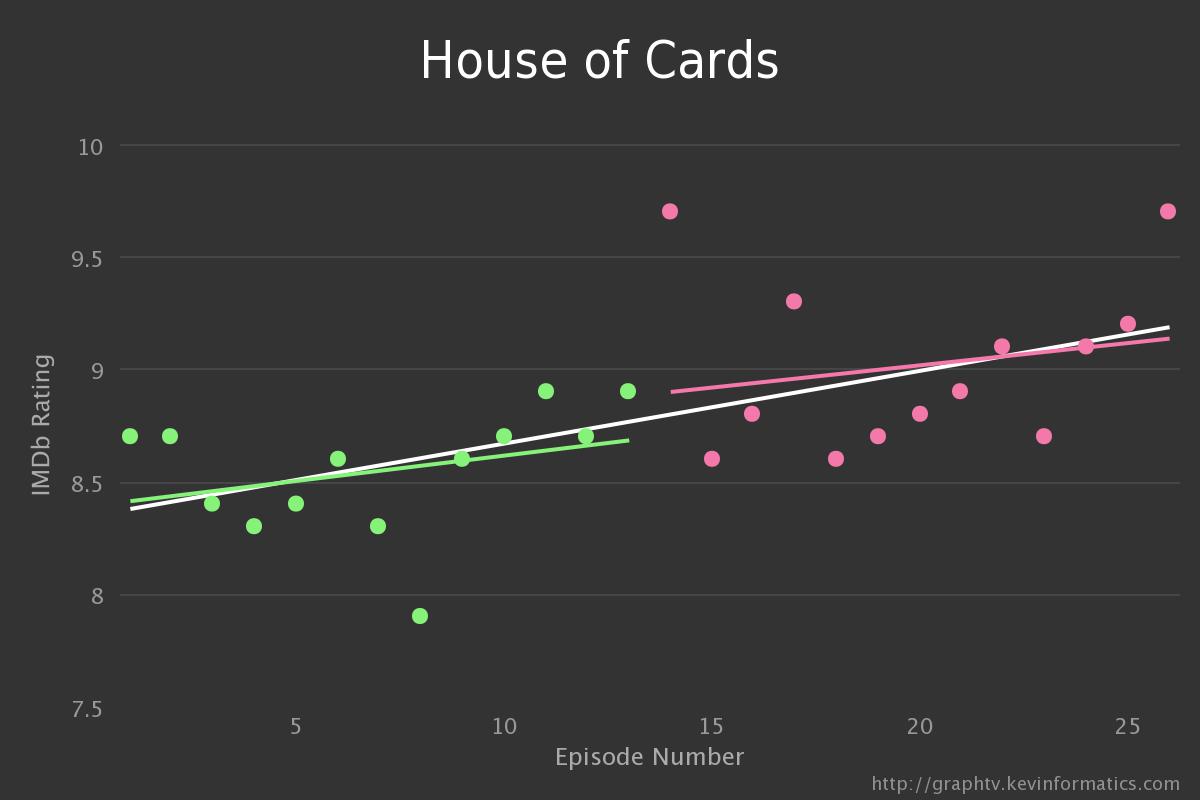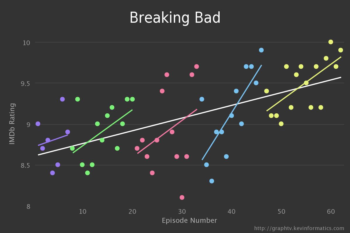 Le site Graph TV va vous simplifier l’exercice dans ce dernier cas. En effet, à partir d’IMDb et des scores pour chaque épisode, Graph TV va générer un graphique qui permettra alors de voir la tendance par saison ainsi que la tendance générale de la série. On peut alors voir comment le sutilisateurs ont apprécié la série et juge sa qualité à mesure que celle-ci avance dans le temps.