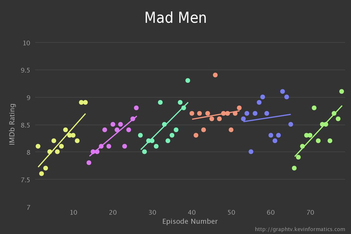 Voici également d’autres exemple avec Les Simpson, The Big Band Theory, House of Cards, Mad Men et The IT Crowd mais vous pouvez directement choisir vos séries sur Graph TV. Pour ceux que cela intéresse il est possible d’exporter les graphiques dans le format que vous souhaitez.