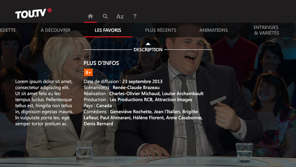 À noter que si la version enrichie d’ICI Tou.tv n’est pas encore disponible, elle sera offerte sur Télé OPTIK au cours des prochains mois. Présentée en mars, l’offre Extra d‘ICI Tou.tv permet notamment d’accéder à 400 titres supplémentaires (film ou épisode de série) par rapport à l’offre de base en contenus vidéo actuelle ainsi qu’une qualité de vidéo en Haute Définition (HD). Disponible en version payante, cette offre enrichie est déjà disponible gratuitement pour les clients de TELUS et Rogers à travers l’application mobile ou le site Web.