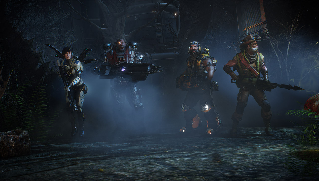 Les quatre autres joueurs incarnent donc un groupe de chasseurs (en vision subjective, comme dans un FPS classique), chacun ayant une classe spécifique : assaut, soutien, traqueur et médecin. Comme vous pouvez vous en douter, chaque classe a un rôle à jouer et dispose de certains atouts. La coopération est essentielle pour remporter la victoire. J’ai pu m’essayer à toutes les classes de personnages et chacune se joue d’une manière différente. La classe assaut se concentre sur l’attaque et sera chargée d’infliger de gros dégâts au monstre. Le soutien devra apporter une aide logistique aux autres membres du groupe. Le traqueur joue un rôle essentiel puisqu’il peut pister plus facilement le monstre, et déployer un champ de force capable de le contenir dans une zone de combat. Enfin, le médecin pourra soigner ses coéquipiers, mais également tirer des balises sur le monstre ou ralentir ses actions à l’aide de munitions anesthésiantes.