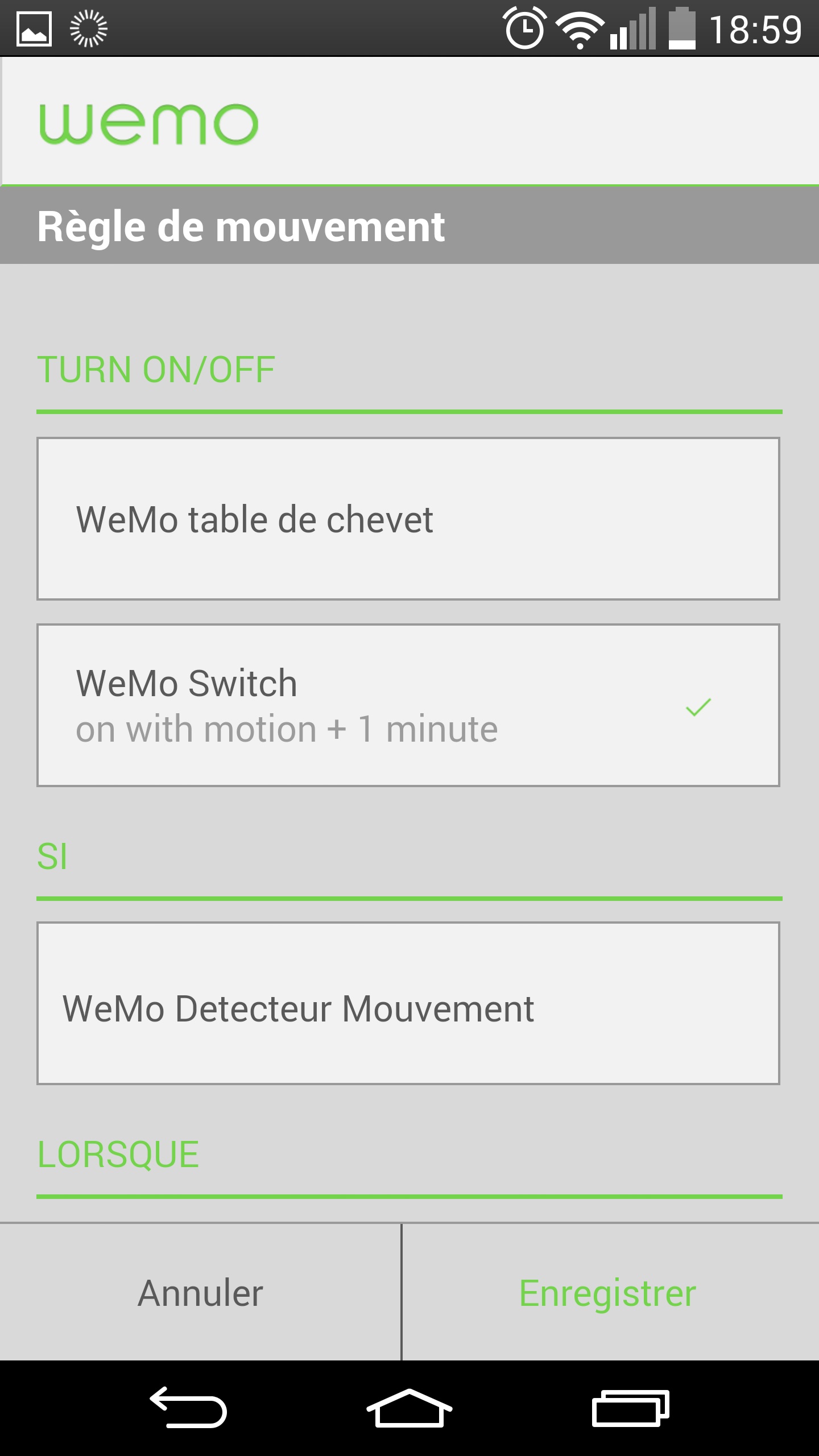 Configuration et fonctionnement des appareils WeMo