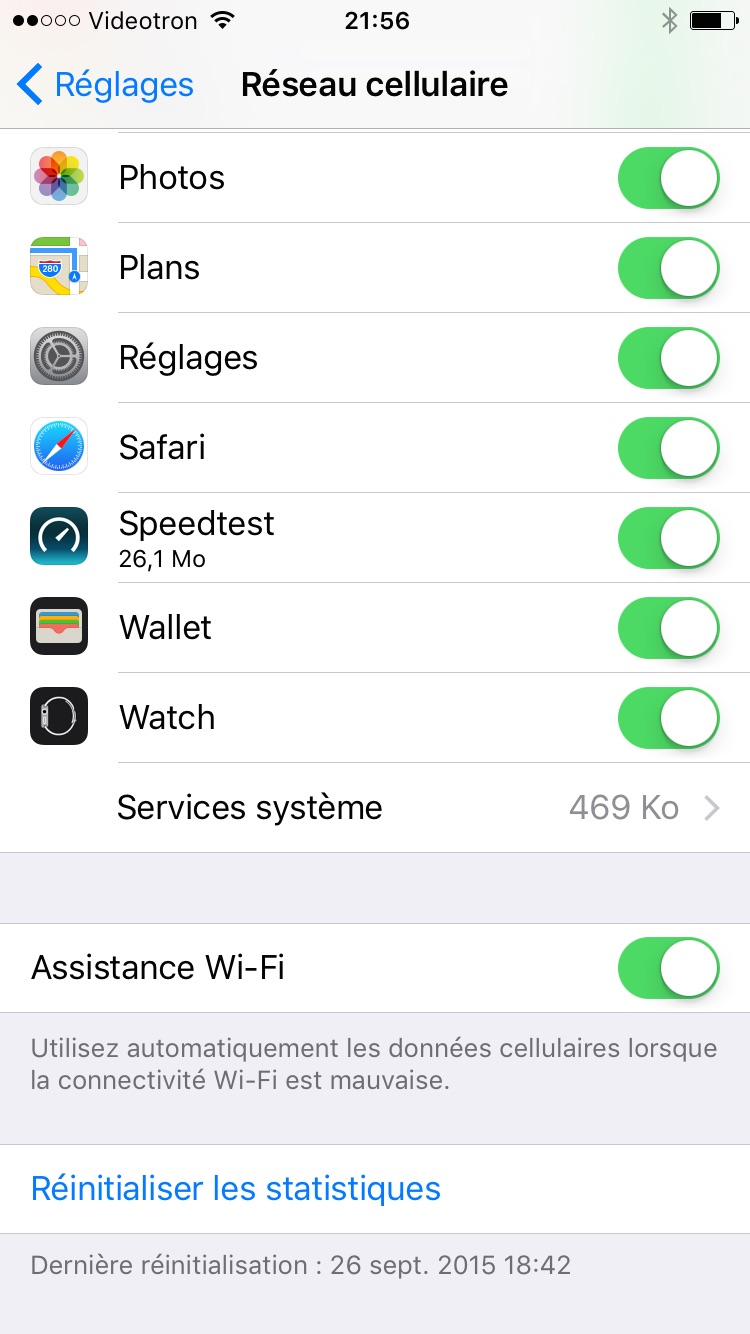 Pour désactiver cette option, c’est très simple, il suffit de se rendre dans les Réglages – Réseau cellulaire et de désactiver l’assistance Wi-Fi tout en bas du menu.