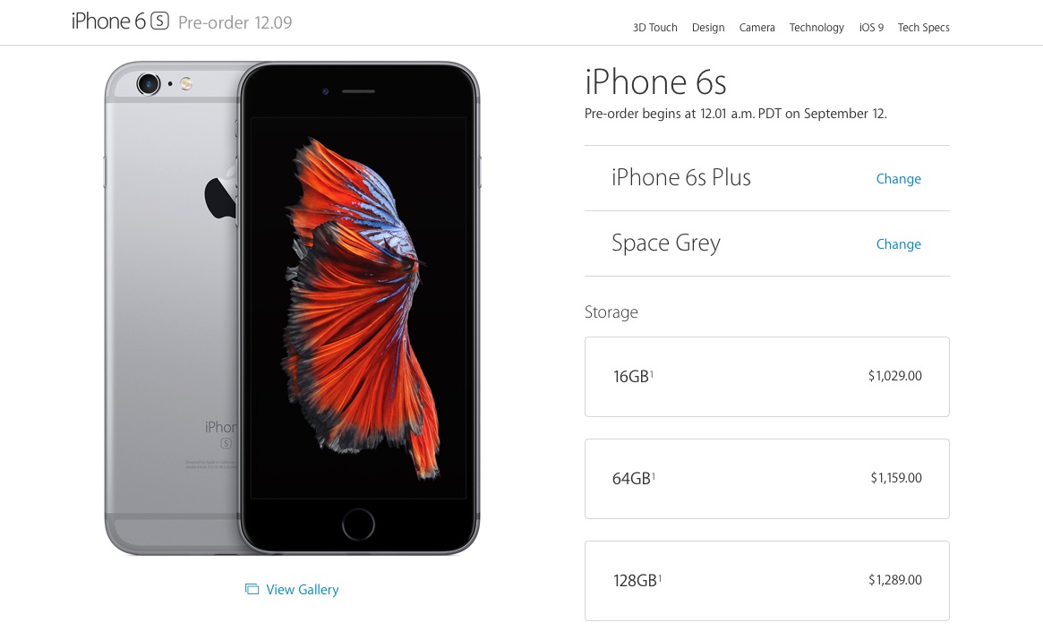 - 128GB: 1 289$ (vs 1 229$ auparavant pour l’iPhone 6 – 1 079$ lors du lancement)