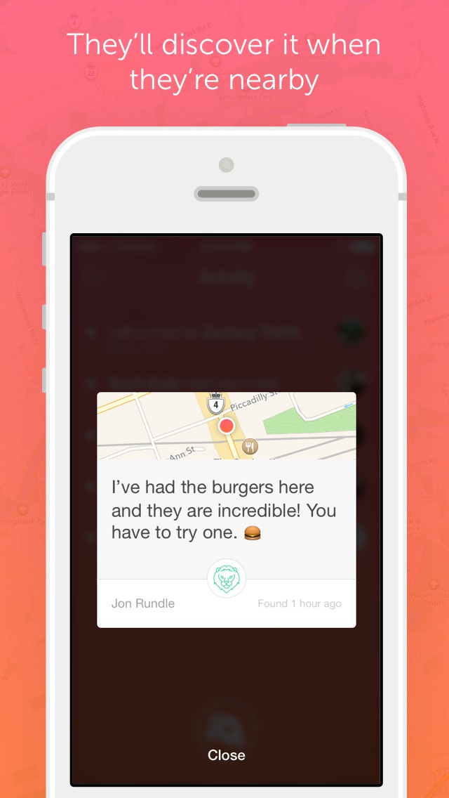 Et si vous laissiez des messages en fonction d’un lieu et qui s’activent quand vos amis sont à proximité ? C’est l’idée derrière Knit, une application qui permet d’envoyer des messages privés géolocalisés à vos amis ou à votre réseau de contacts. Ainsi lorsque vous êtes dans un lieu qui vous semble intéressant, vous pouvez laisser une note et choisir un (ou plusieurs) contact utilisant Knit. La prochaine fois que la personne passe à proximité elle peut alors découvrir votre message.