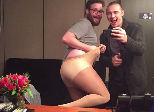 Bien que ces attaques pourraient causer certains dommages auprès de Sony Pictures (mais aussi de ses employés), James Franco et Seth Rogen ont décidé de prendre le contre-pied concernant ces attaques pour en rire… et évidemment faire la promotion de leur duo et du film. Ainsi, lors du Saturday Night Live du week-end dernier, ils se sont livrés à un sketch pour faire un parallèle avec les photos qui ont été piratées courant septembre 2014 :